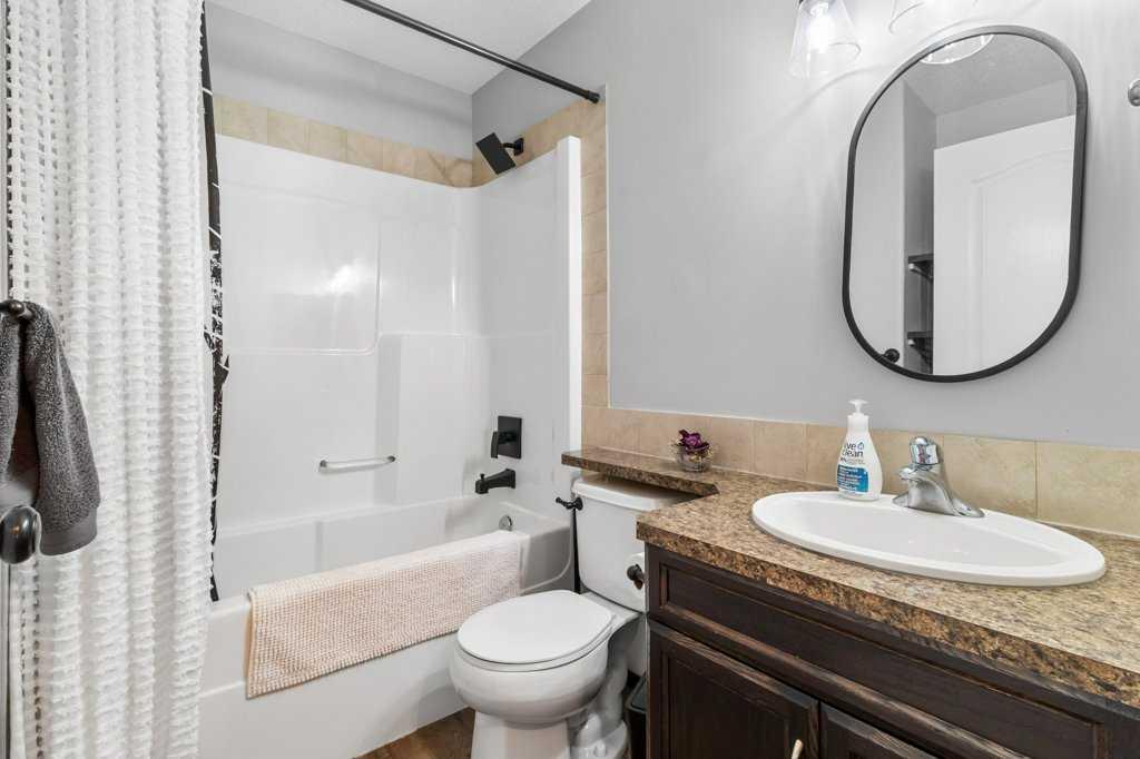 Nestled in a tranquil corner of Red Deer, this delightful home offers a perfect blend of modern elegance and family friendly living. Boasting four generously sized bedrooms and three baths, this property is ideal for growing families. This home enjoys a spacious corner lot with the added luxury of backing onto a pathway that leads directly to a serene green space, ensuring both privacy and access to nature. Vaulted ceilings amplify the sense of space, while vinyl plank flooring in the main living area adds both style and durability. The heart of the home, the kitchen, features chic quartz countertops, a pantry, and an undermount sink set against a new backsplash. The dining area opens out to a large deck, complete with duradeck, a built in storage area with power underneath. Outdoor living is further enhanced with a stamped concrete pad, and fire pit for cozy family gatherings. The master bedroom is a peaceful retreat complete with a walk in closet and three piece ensuite. A large entryway, additional bedroom upstairs with four piece bath and a fully developed basement with a sizeable family room and two more large bedrooms (one has no doors) ensure ample space for everyone. This property also features a low maintenance yard with curbing, RV gate access and underfloor heating roughed in basement for added comfort.