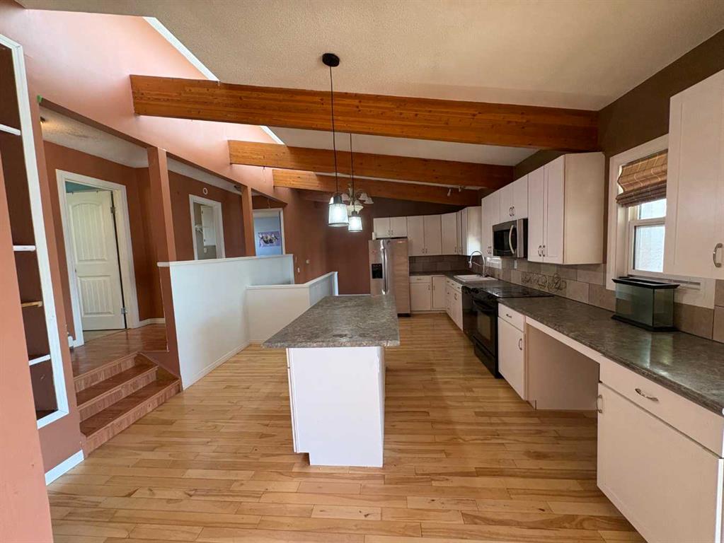 Welcome to this 3-bedroom, 3-bathroom home offering beautiful mountain views, nestled in a quiet cul-de-sac within a fantastic neighbourhood. Conveniently located close to schools and parks, with walking paths throughout the community and just a short walk to the river, this home is perfect for those who love the outdoors. The home features upper-floor living with a bright, open layout, highlighted by a beautiful fireplace and a large west-facing patio, ideal for relaxing and enjoying stunning sunsets and mountain views. The main floor also includes a (illegal) basement suite. A wonderful opportunity combining location, views, and lifestyle.