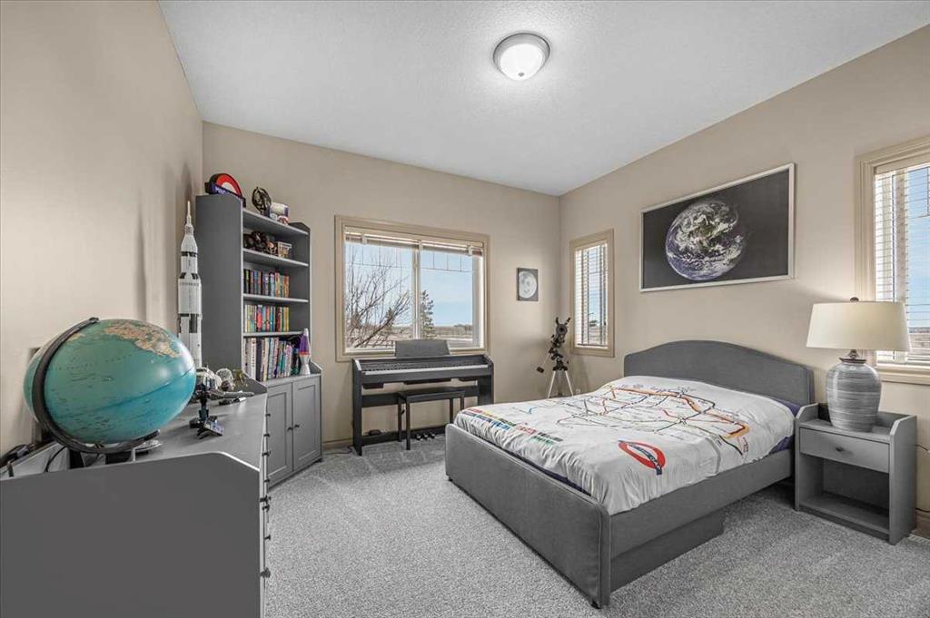 OPEN HOUSE, SATURDAY, MARCH 21, 2-4 PM. Step right into a world where rural serenity meets urban accessibility-just minutes to Okotoks! Nestled in a picturesque sub-division with southwest views including foothills and mountain views, this beautiful acreage is a haven for horse lovers and offers 4.25 acres which are fenced and cross fenced into 4 pastures-each with post and rail fencing, giving it a unique country charm. This perfect setting features a walk-out bungalow with over 2600 sqft of developed living space in an open floorplan, with vaulted ceilings, 2 beds up and 2 down, air conditioning and paved drive right to the front step. Along with a barn that comes with 2 stalls, a tack room, horse shelters and additional storage, this beautiful equestrian community is bordered to the south by 8 acres of reserve and riding trails including 10m wide riding trails throughout the subdivision making this a dream location for equestrians and those looking for additional space. Inside, this welcoming home offers an open concept layout with vaulted ceilings, a skylight that floods the home with natural light, a cozy fireplace and doors that lead out to the south facing deck from which to enjoy the breathtaking views of the valley and foothills. The open kitchen, dining and living room are great for entertaining and the master bedroom with 5 pc ensuite, another bedroom and 4 pc bath complete the main floor living space (both bedrooms have new carpet). You will appreciate the curved staircase that leads down into the bright walk out basement, featuring two bedrooms, a 4 pc bath, a cold room for your garden produce, a large family room with gas fireplace and functional wet bar which makes for another great space to entertain your family and friends. Outside, a private patio off the walkout basement provides a serene retreat, while on the west side you will find another extra patio area where you can soak in the sun and enjoy the mountains. The charming firepit area adds warmth and character to the outside space and you will appreciate the garden space. The well is a great producer at 6 g/m. You will find the perfect blend of outdoor living while close to Okotoks in this unique and beautiful space! (Private and public school buses come to the door)