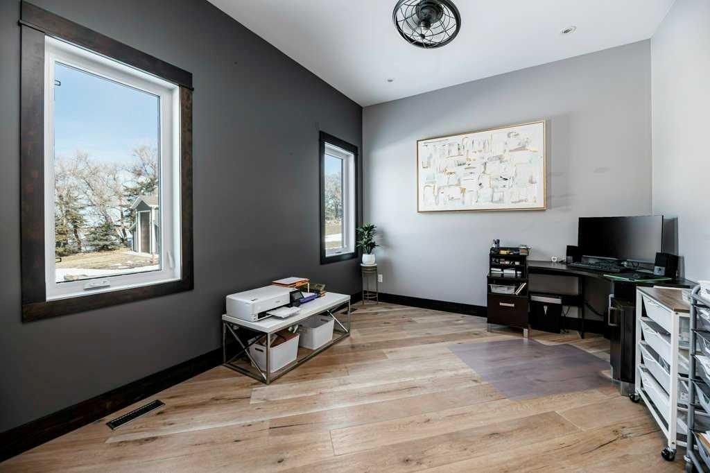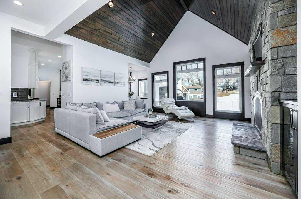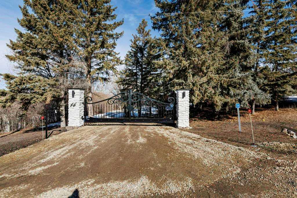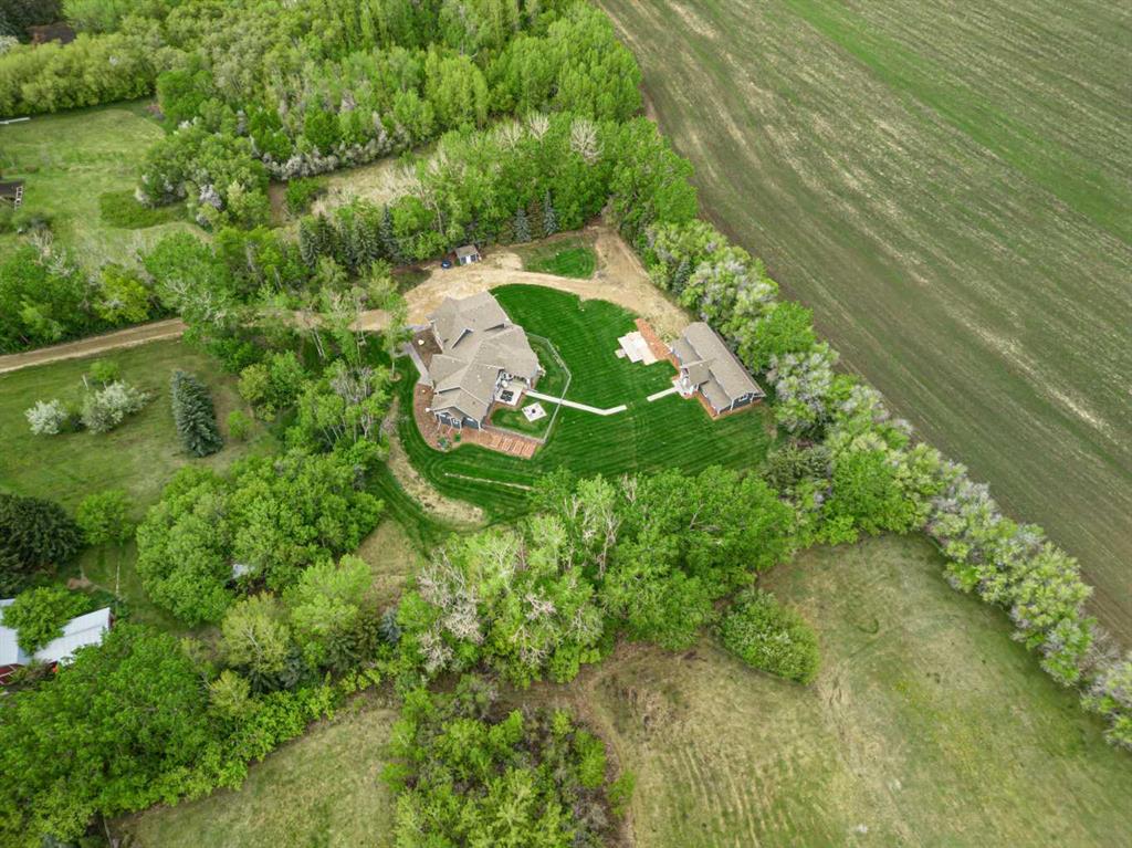 A Rare Find! Why settle for city living when you can own your own private paradise just minutes from Red Deer? This luxurious 2.45-acre estate offers unparalleled privacy, elegance, and convenience. Enter through a stunning high-end entrance gate, equipped with cameras and an integrated security system for added peace of mind. A serene, tree-lined driveway leads you to this custom-built home, showcasing the finest materials and craftsmanship throughout. With 3,536 sq. ft. above grade, the home features multiple vaulted ceilings with knotty pine planks and maple-finished beams. The spacious living room boasts wide-plank white oak hardwood flooring, vaulted ceilings, a floor-to-ceiling stone-front gas fireplace with built-ins on either side, and large windows offering breathtaking views of the expansive acreage. The adjoining two-tiered back deck includes an additional gas fireplace, perfect for outdoor relaxation and entertaining. The home has been freshly painted throughout and is equipped with central air conditioning.The chef’s kitchen is a dream, complete with floor-to-ceiling soft-close white cream cabinetry, granite countertops, a full tile backsplash, pot and pan drawers, under-cabinet lighting, high-end Monogram appliances, a six-burner gas range, a statement range hood, and a commercial-sized refrigerator. The massive island features leathered granite countertops and a lowered eating bar. The cozy dining area opens to the beautiful back deck, making it ideal for entertaining. A huge walk-in pantry adds even more convenience. The spacious primary bedroom is a true retreat, featuring a spa-like ensuite with a soaker tub, a massive two-person steam shower, dual walk-in closets, and separate vanities. The main floor is completed by an additional bedroom, a 3-piece bathroom, a private office, a laundry room, and a large mudroom. Upstairs, you’ll find a second bedroom with breathtaking views, a built-in window seat, and a 4-piece ensuite, along with an additional office. The massive family/games room features vaulted ceilings, a wet bar with a microwave and fridge, and a TV with 3D capability for ultimate entertainment. A second laundry room adds convenience to multi-level living. Car enthusiasts and hobbyists will appreciate the oversized attached triple garage (40' x 32'), complete with in-floor heating, hot and cold water taps, and ample workspace. The beautifully landscaped yard includes an upgraded driveway, an insulated shed (currently a cat/dog house), raised garden beds, two RV hookups, and an impressive 30' x 62' shop. The shop features a finished office, a 14-foot overhead door, and architectural details that complement the home. This property has seen approximately $250,000 in recent upgrades over the past few years, (list is available upon request). If additional space is desired, the sellers are offering blueprints (valued at $10,000) for both the house/shop, & plans for more bedrooms. The property is minutes away from golf, skiing & city amenities.
