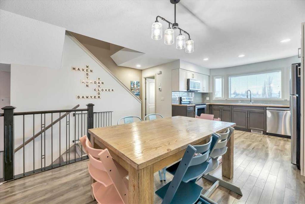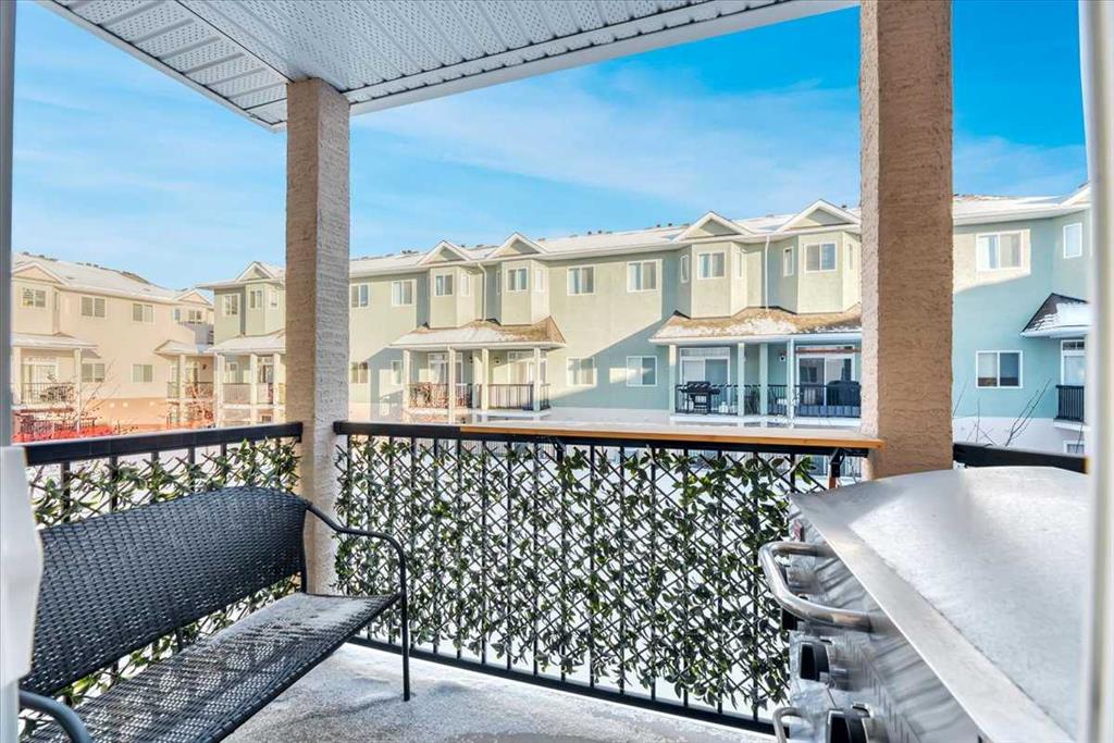 Welcome to 124 Strathcona Circle, a beautifully maintained two-storey townhome tucked into the desirable Strathaven community. From the moment you step inside, you'll notice the thoughtful layout and warm, inviting design that make this home feel both modern and cozy. In the main living area, high ceilings, plush carpeting, and a striking gas fireplace create a cozy yet refined atmosphere. A full wall of windows lets in natural light, and just off this inviting space, you'll find a private covered balcony; ideal for morning coffee, fresh air, or weekend grilling. A few steps up, the open-concept kitchen and dining area overlook the living room below. The kitchen offers great prep space, stylish two-tone cabinetry, stainless steel appliances, and a large window that frames peaceful neighborhood views. Whether you're hosting or enjoying a quiet night in, this layout makes mealtime easy and enjoyable. Upstairs, the generous primary bedroom boasts large windows, dual closets, and its own private 3 piece ensuite. Additional bedrooms and bathrooms are thoughtfully laid out, offering space and flexibility for kids, guests, or a home office. The lower level adds even more versatility with a cozy second gas fireplace, perfect for a playroom, media area, or gym. An attached garage, central air conditioning, and plenty of storage round out this well-appointed home. Located steps from parks, schools, and amenities, this is a fantastic opportunity for anyone seeking style, space, and comfort in a family-friendly neighborhood. Don’t miss your chance. Book your private showing today!