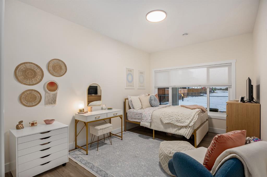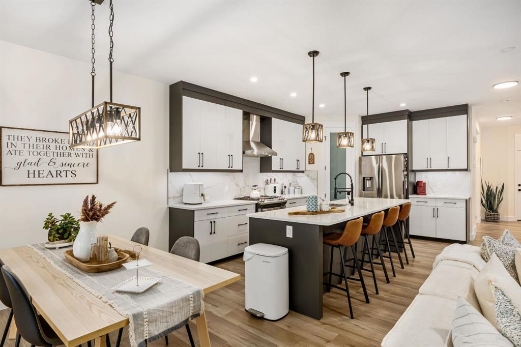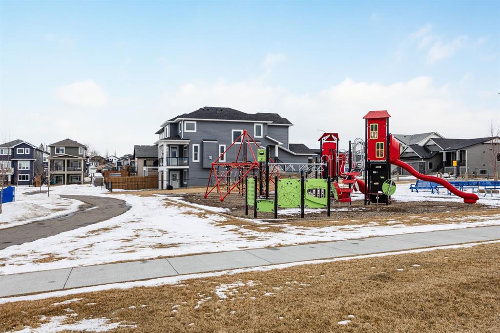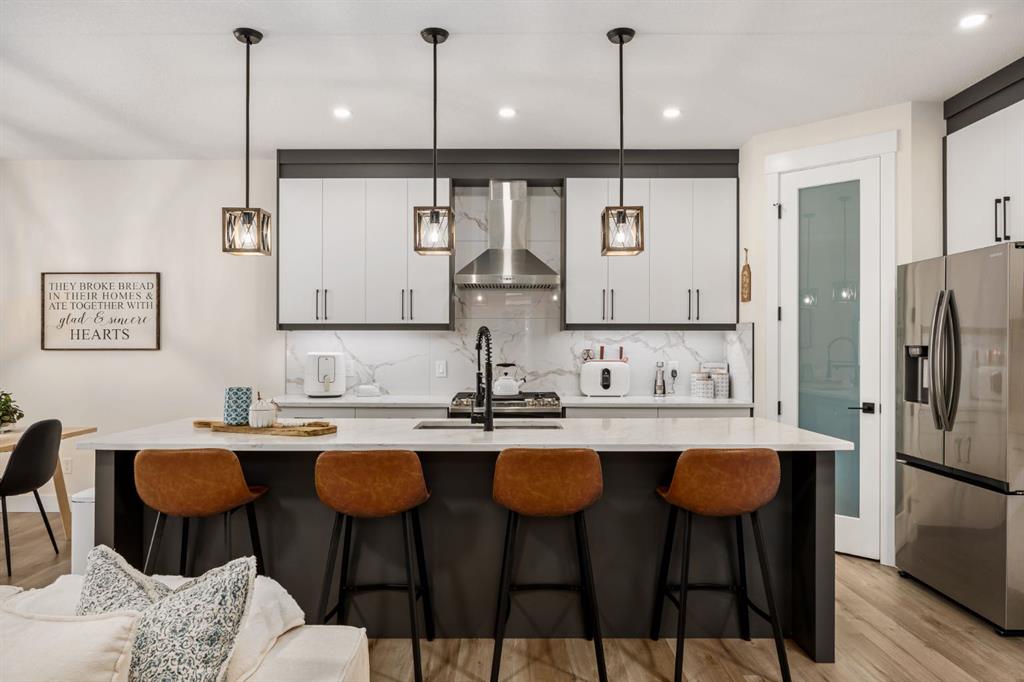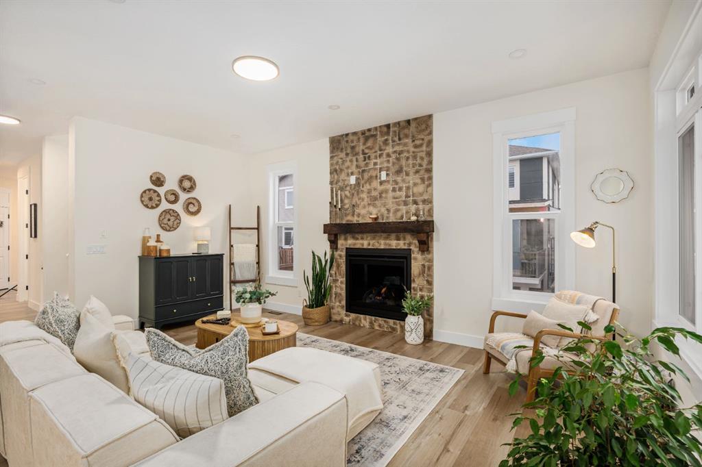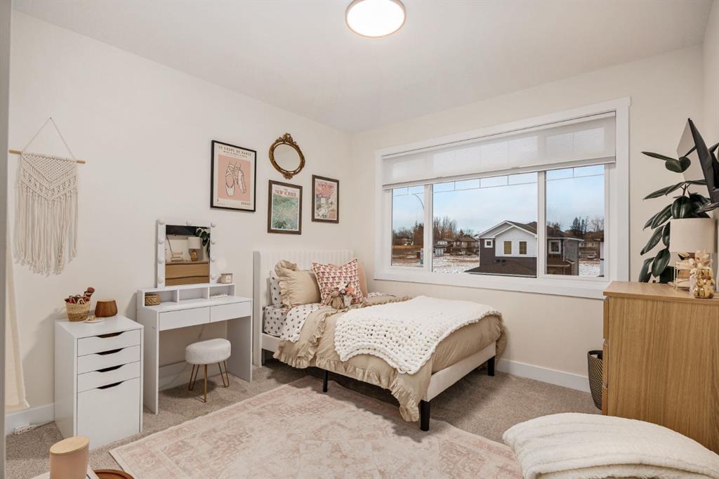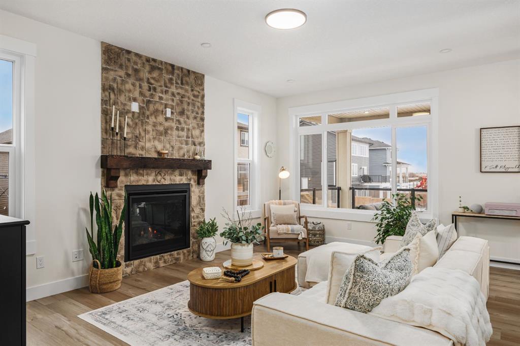 Discover refined living in this impeccably crafted 2024 custom-built two-storey walkout by Shayman Homes, located in the sought-after lake community of Lakewood in Strathmore. Backing onto a lush green space and walking path with no neighbours behind, this east-facing home offers nearly 3,000 sq.ft. of beautifully designed living space with luxury finishes throughout. The striking exterior with stone accents and extended driveway welcomes you into a bright foyer filled with natural light from oversized windows. The main floor features 9’ ceilings and luxury laminate flooring, flowing through a thoughtfully designed layout. A private main-floor office with an 8’ doorway provides the perfect workspace or flex room. The chef’s kitchen is the heart of the home, showcasing an expansive quartz island, soft-close white cabinetry with black hardware, undermount sink, and premium stainless steel appliance package including a gas range, chimney-style hood fan, built-in oversized microwave, dishwasher, and refrigerator with water hookup. A spacious pantry with built-in shelving and automatic lighting adds everyday convenience. The dining and living areas are flooded with natural light and anchored by a stunning floor-to-ceiling stone gas fireplace with custom mantel. Step outside to the covered upper deck spanning the width of the home, complete with recessed lighting, custom glass railings, and a gas line rough-in—ideal for entertaining while overlooking the landscaped yard and park. Upstairs features a vaulted ceiling opening into a massive bonus room, upper laundry with tile flooring and quartz counters, and three generously sized bedrooms. The primary retreat offers a spa-inspired ensuite with dual quartz vanity, 5’ soaker tub, floor-to-ceiling tiled shower, a private toilet room, and a walk-in closet with custom built-ins. A stylish 4-piece bathroom completes the level. The fully developed walkout basement extends the living space with 9’ ceilings, luxury laminate flooring, a spacious family room, and a custom 10’ wet bar with quartz counters, tile backsplash, and built-in cabinetry. Two large bedrooms, a 4-piece bathroom, mechanical room, and under-stair storage complete the lower level. Outside, enjoy a covered concrete patio, fully landscaped yard, and unobstructed views of the greenspace and playground. Located minutes from schools, amenities, recreation, and golf, with Calgary just 30 minutes away, Lakewood offers a lifestyle unlike any other. Dont miss your opportunity to own this stunning family home. Book your private showing today.