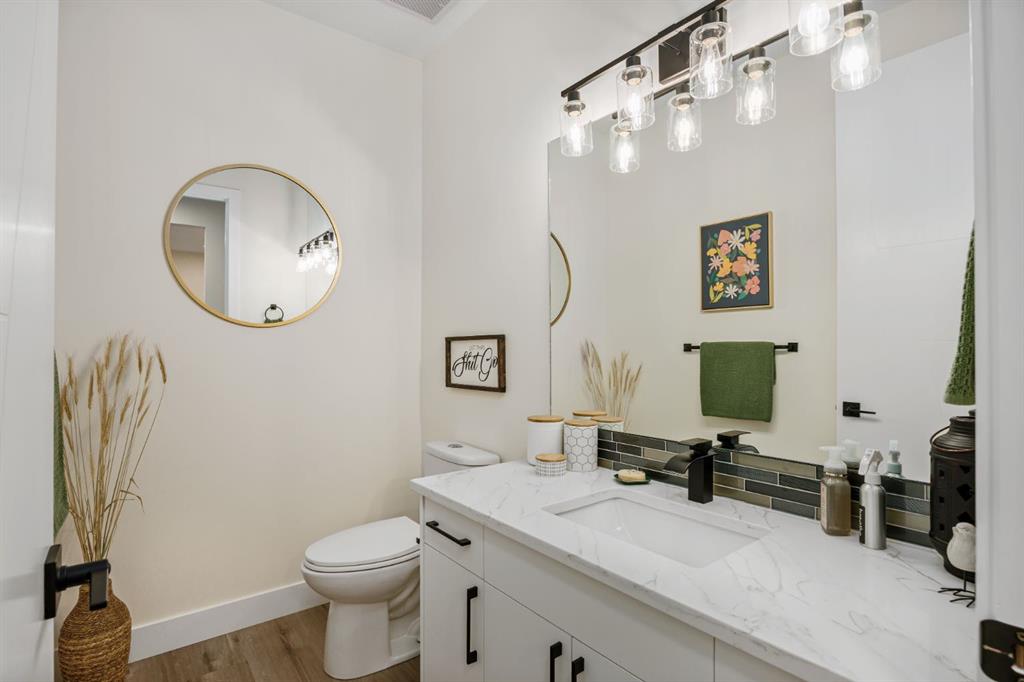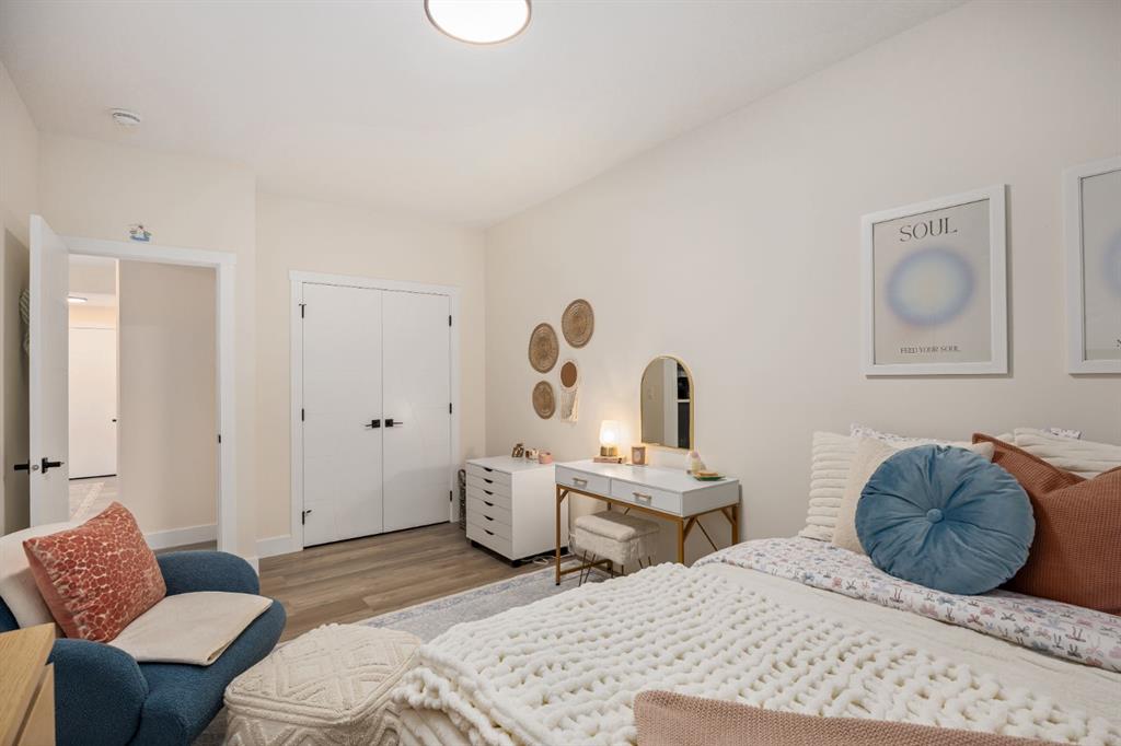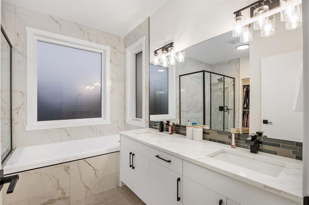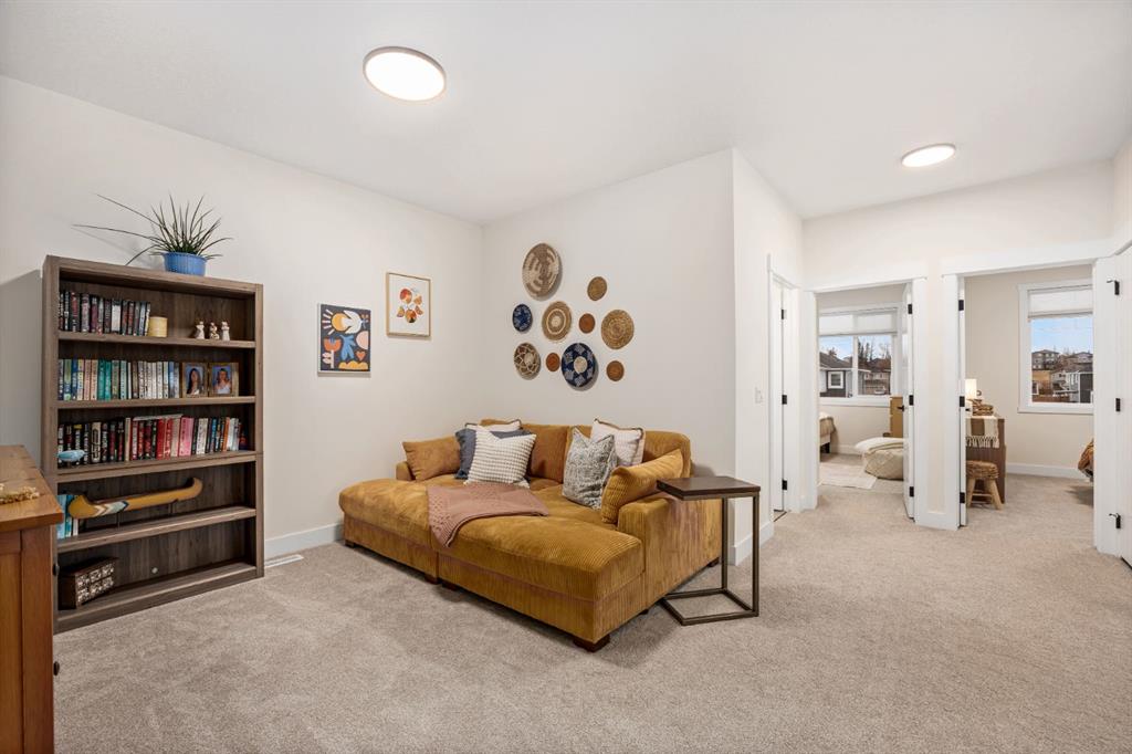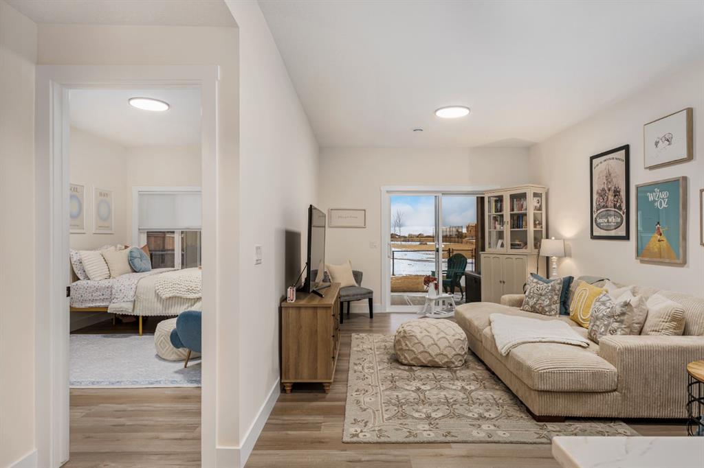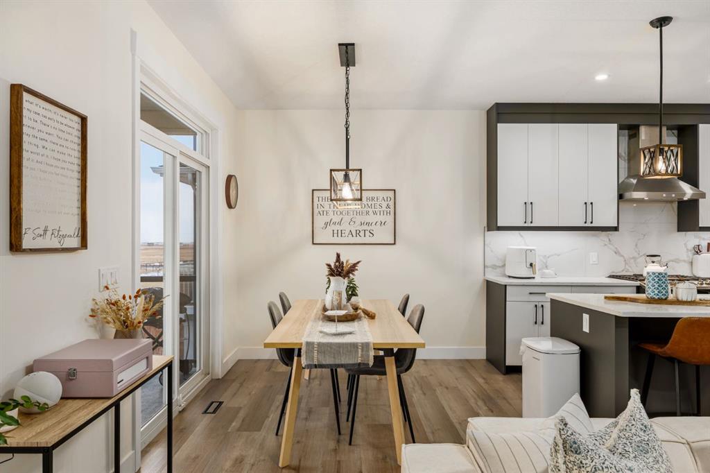 Discover refined living in this impeccably crafted 2024 custom-built two-storey walkout by Shayman Homes, located in the sought-after lake community of Lakewood in Strathmore. Backing onto a lush green space and walking path with no neighbours behind, this east-facing home offers nearly 3,000 sq.ft. of beautifully designed living space with luxury finishes throughout. The striking exterior with stone accents and extended driveway welcomes you into a bright foyer filled with natural light from oversized windows. The main floor features 9’ ceilings and luxury laminate flooring, flowing through a thoughtfully designed layout. A private main-floor office with an 8’ doorway provides the perfect workspace or flex room. The chef’s kitchen is the heart of the home, showcasing an expansive quartz island, soft-close white cabinetry with black hardware, undermount sink, and premium stainless steel appliance package including a gas range, chimney-style hood fan, built-in oversized microwave, dishwasher, and refrigerator with water hookup. A spacious pantry with built-in shelving and automatic lighting adds everyday convenience. The dining and living areas are flooded with natural light and anchored by a stunning floor-to-ceiling stone gas fireplace with custom mantel. Step outside to the covered upper deck spanning the width of the home, complete with recessed lighting, custom glass railings, and a gas line rough-in—ideal for entertaining while overlooking the landscaped yard and park. Upstairs features a vaulted ceiling opening into a massive bonus room, upper laundry with tile flooring and quartz counters, and three generously sized bedrooms. The primary retreat offers a spa-inspired ensuite with dual quartz vanity, 5’ soaker tub, floor-to-ceiling tiled shower, a private toilet room, and a walk-in closet with custom built-ins. A stylish 4-piece bathroom completes the level. The fully developed walkout basement extends the living space with 9’ ceilings, luxury laminate flooring, a spacious family room, and a custom 10’ wet bar with quartz counters, tile backsplash, and built-in cabinetry. Two large bedrooms, a 4-piece bathroom, mechanical room, and under-stair storage complete the lower level. Outside, enjoy a covered concrete patio, fully landscaped yard, and unobstructed views of the greenspace and playground. Located minutes from schools, amenities, recreation, and golf, with Calgary just 30 minutes away, Lakewood offers a lifestyle unlike any other. Dont miss your opportunity to own this stunning family home. Book your private showing today.