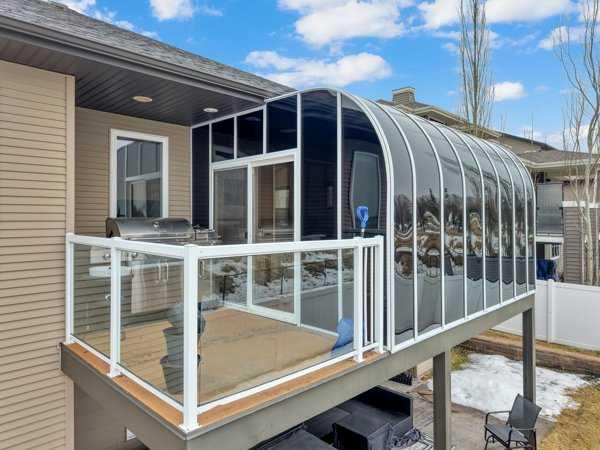 Move In Ready - This meticulously taken care of home has had many updates between 2024-2026: new roof, new windows throughout, new furnace, smart exterior built in lights installed with gutter guard eavestroughs, all new higher end appliances. The hot water on demand and 3 seasons room are great additions with added protection of permits and warranty. Enjoy the gas bbq with the west facing sunset and 4th level tint in dining. This home will never have neighbors behind you. Real wood cabinetry and quartz throughout, custom window coverings, feature ceilings, walk-in pantry, and surround sound on both levels. The walkout basement has unbelievable storage, cork floors, a wet bar, theatre room, and underfloor heat — pool table and theatre stay. All furniture is negotiable. Triple heated garage, heated driveway and newly installed EV charger (can stay)