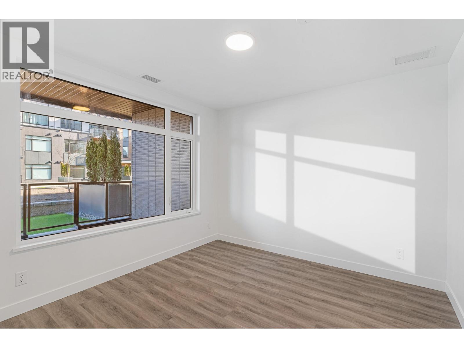 Ground-level corner unit at The Residences at Lakeview Village with 2 parking stalls and 2 storage lockers, a rare combination. This 1 bedroom plus den home offers direct walk-in access from outside and a walk-out patio. Enjoy same-level access to the pool, hot tub, courtyard, and fitness centre, no elevators, no hallways. Located close to the front of the building for fast in and out access. The layout is practical and well designed, with a spacious den and a bedroom positioned across the width of the home for added separation and privacy. The kitchen showcases Italian cabinetry, gas stove, an upgraded waterfall-edge island, wine fridge, and an oversized, extra-deep island designed for seating. The home features a modern color scheme, smooth 9-foot ceilings, and in-floor heating in the bathroom. The ensuite includes a custom vanity with integrated mirror lighting. Additional amenities include an indoor greenhouse, rooftop gardening boxes with lake views, and an exclusive Owner’s Sky Lounge. Steps to grocery stores, childcare, pubs, restaurants, wineries, transit, and everyday services. A new community centre, sports courts, and kids park are directly across the street. All just a short five minute drive to downtown Kelowna.