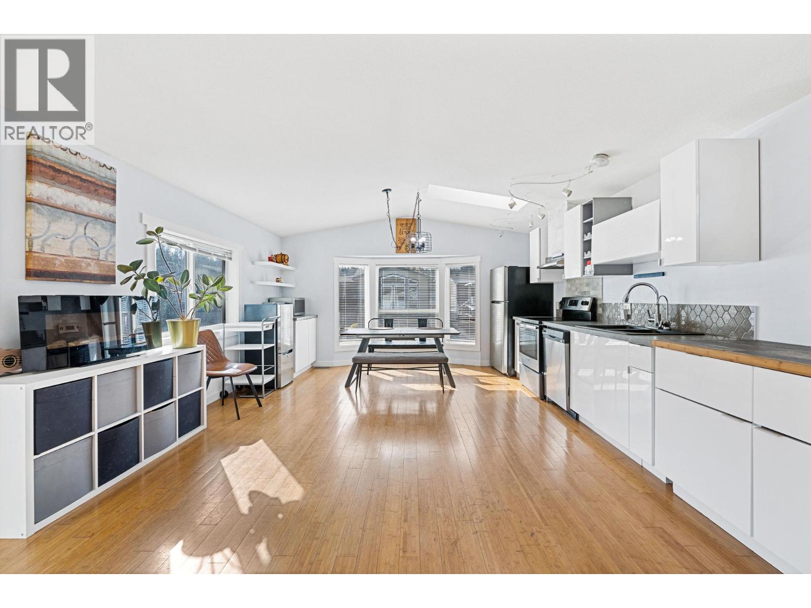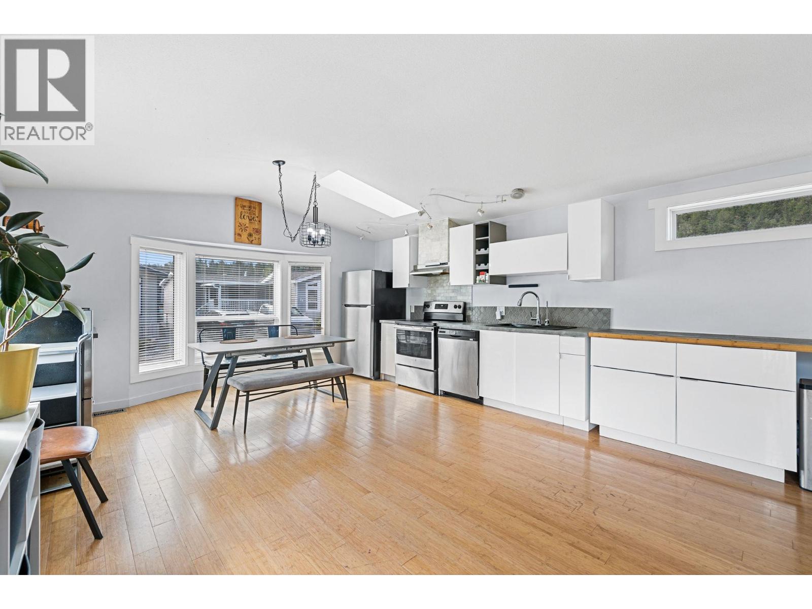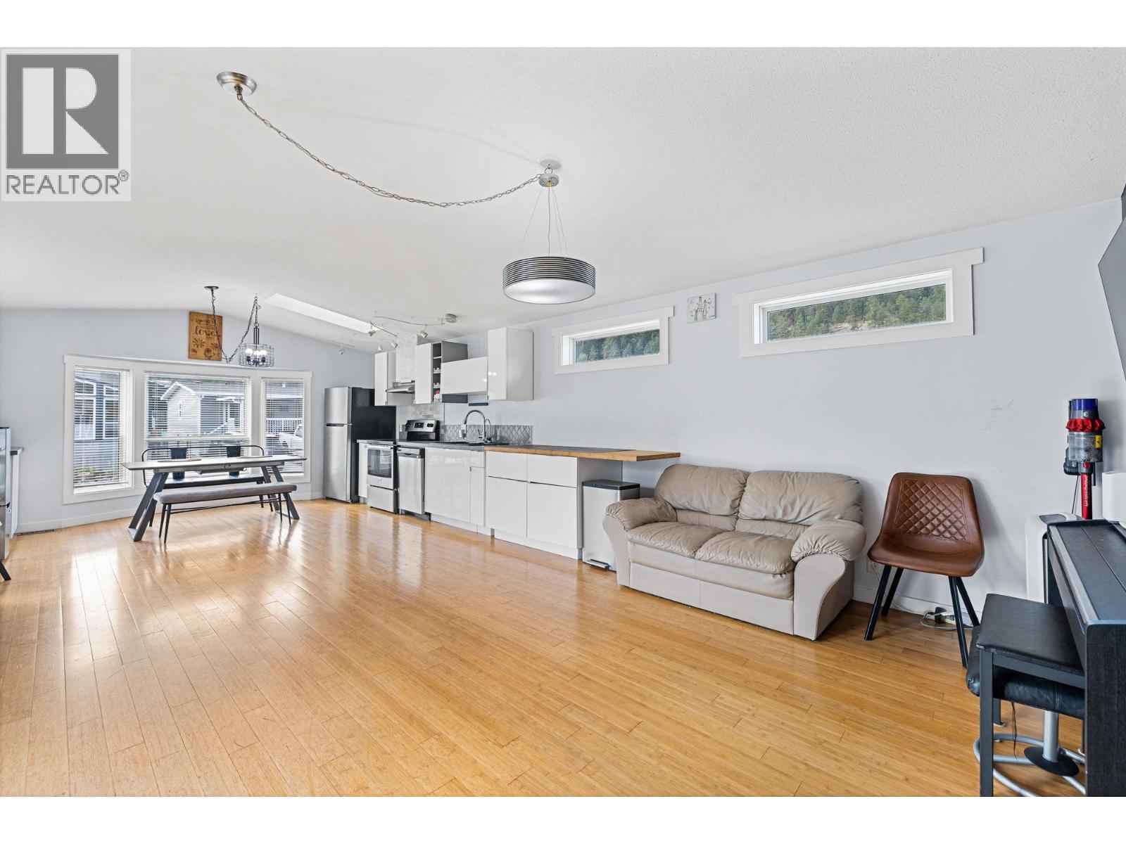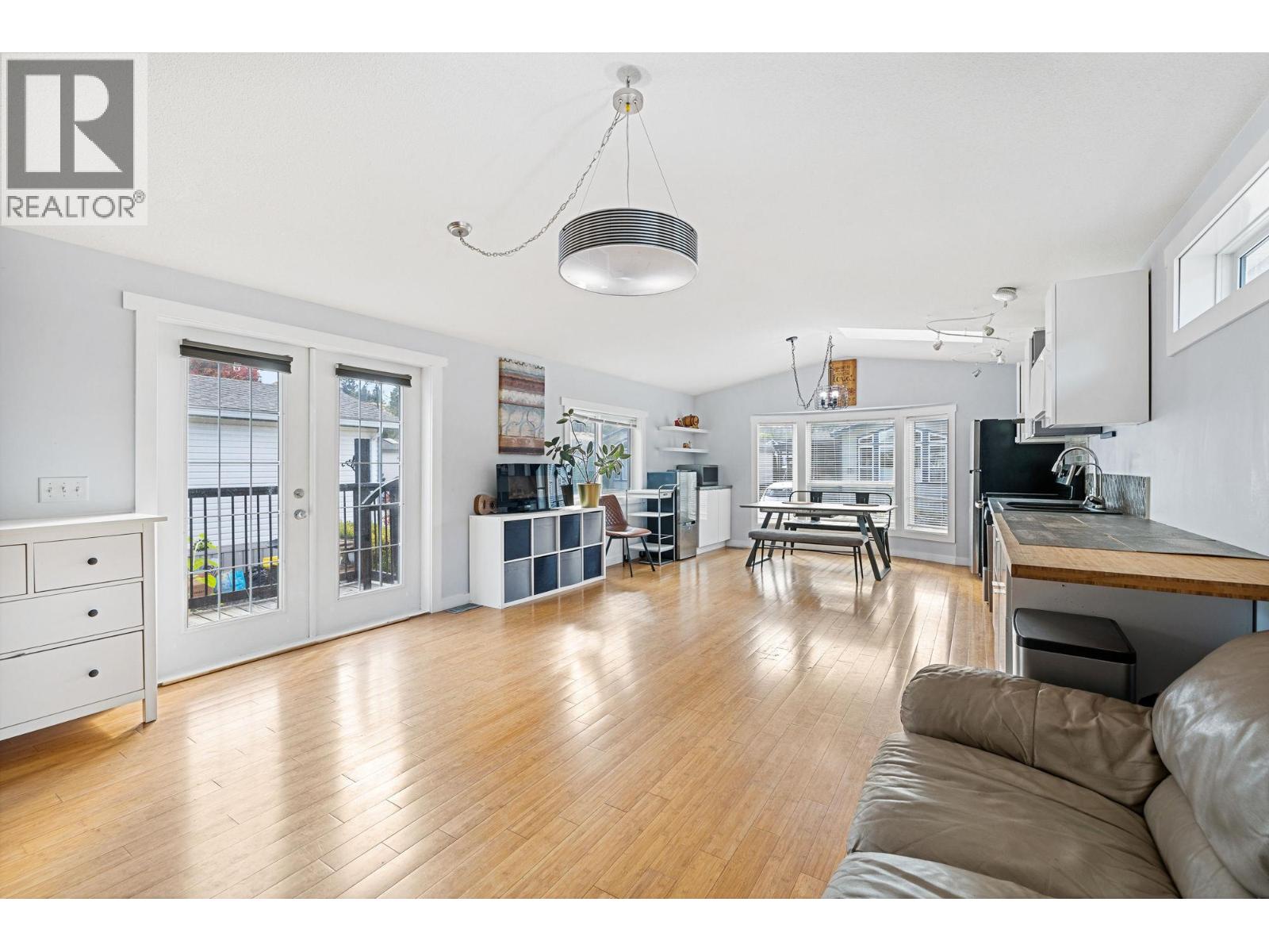 This 2-bedroom, 1-bath home offers a modern feel with a spacious, well-laid-out open-concept design and 9' vaulted ceilings. Located in a well-managed park just steps from hiking trails and only minutes to shopping and beaches, it’s ideal for first-time buyers, downsizers, or those seeking an easy lock-and-leave lifestyle. Recent updates include a remodeled kitchen, new window coverings, fresh trim paint, a new air conditioner, and new washer and dryer. The fenced yard provides privacy with space for gardening or pets, and there are two sheds for extra storage. No age restrictions, and the park allows two pets (15"" to the shoulder with park approval). Pad rent covers water, sewer, trash, and snow removal. Conveniently located just minutes from downtown Kelowna and West Kelowna. Buyer subject to park approval. All measurements should be verified by the purchaser if important.