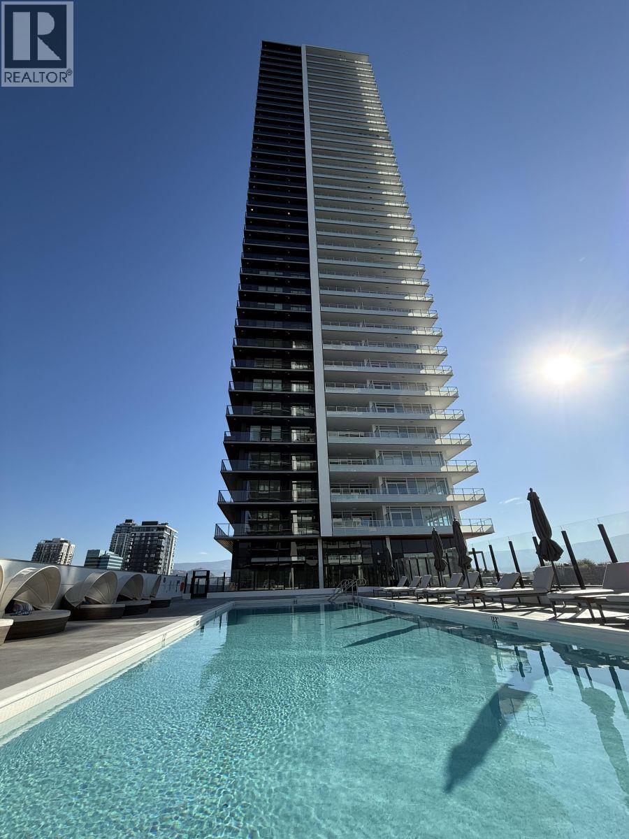 Welcome to The Eli, a newer condominium in the sought-after Water Street by the Park development, completed in 2025 and one of Kelowna’s most exciting downtown addresses. This ONE-bedroom plus DEN, one-bathroom home offers a bright, open-concept layout featuring a sleek modern kitchen, light flooring and cabinetry, and warm contemporary finishes throughout. Step outside to an oversized 267 sq ft covered deck—ideal for indoor-outdoor living and entertaining. Large windows showcase beautiful lake views while flooding the space with natural light. The versatile den works perfectly as a home office, guest space, or additional storage. Residents enjoy resort-style amenities including a theatre room, wine-tasting lounge, dog wash and grooming room, fitness centre, outdoor pool with lounge areas, and a hot tub. Secure entry, professional management, ONE UNDERGROUND PARKING STALL B267 (value of $35,000), and a VISITOR PARKING PASS provide comfort and peace of mind. Located just steps from City Park, sandy beaches, and the dining and shopping along Bernard Avenue, this condo delivers the ultimate blend of luxury, lifestyle, and location. NO GST — already paid and included in Price! Rentals are allowed, with restrictions (min. 30 days) and pets are also allowed, with restrictions (up to two dogs; or 2 cats; or one dog and one cat).