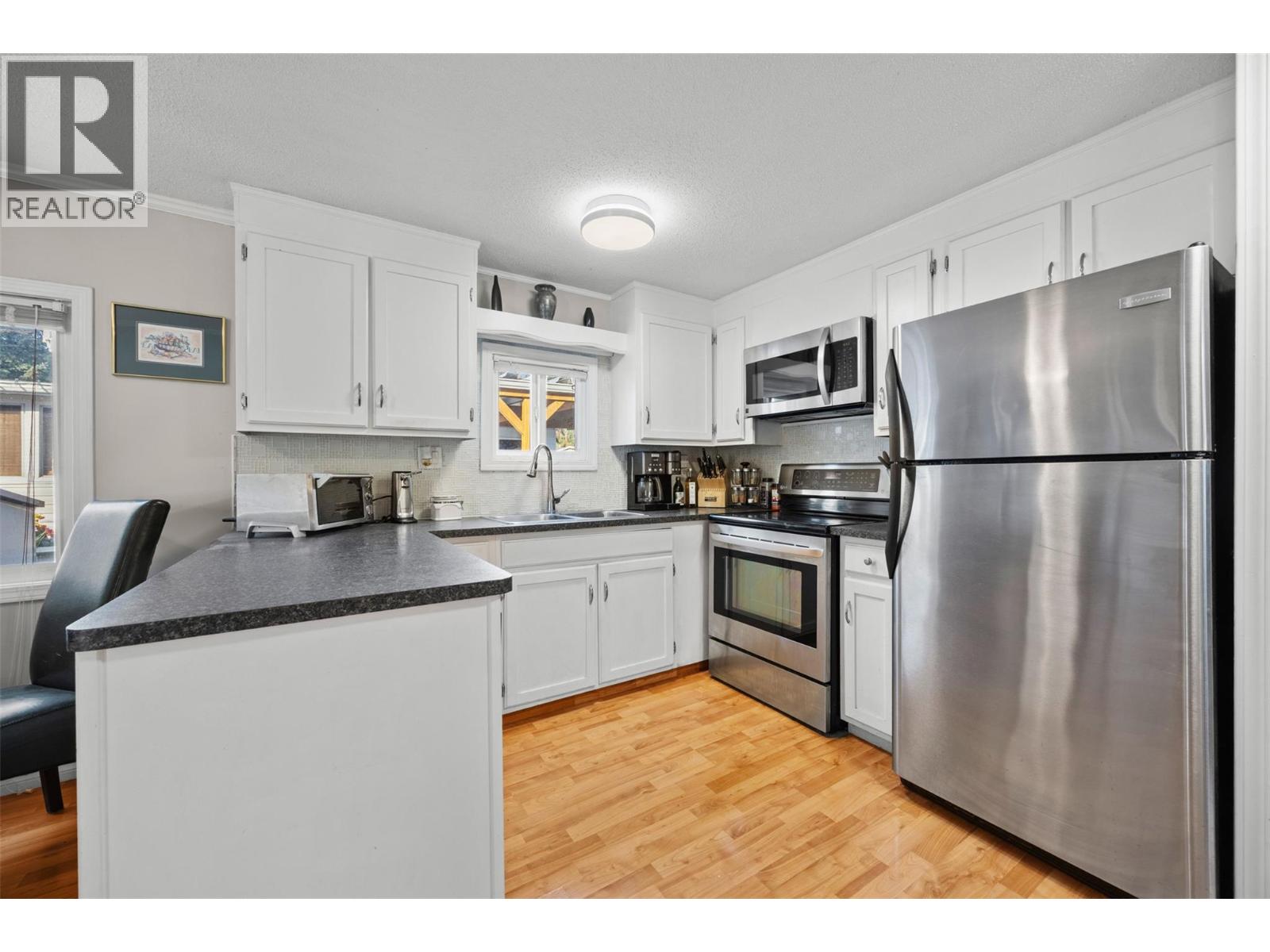 Looking to escape the rental game? Or downsize into a comfortable, well kept home nestled in the middle of one of West Kelowna’s most sought-after parks? Then be sure to take a closer look at this priced-to-sell gem of a home. The floor plan optimizes living space with an oversized living room at the front of the house that gets plenty of natural light. The kitchen is well laid out, has a large double sink and is finished with stainless steel appliances. Laminate flooring throughout makes cleaning a breeze. And to add to the excitement, the furnace/AC was switched to a Heat Pump (15k value) less than 6 months ago! The bathroom was also updated in the last 6 months with a new toilet, sink and mirror. Multiple sheds on the property provide plenty of extra storage and pets (including dogs!) are allowed.