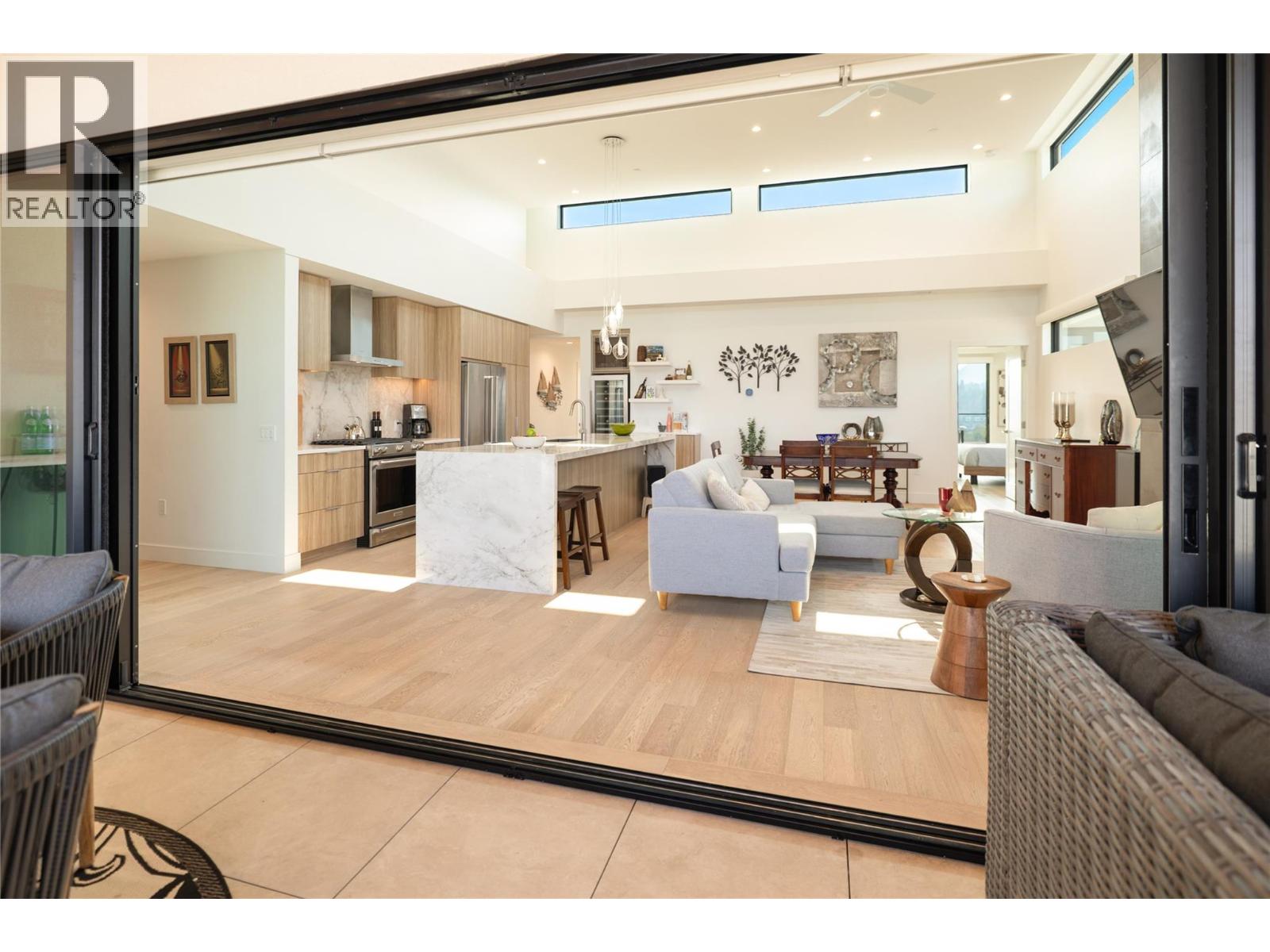 Penthouse living with a lifestyle to match. This top-floor 2 bed plus den, 3 bath home impresses with soaring 16’ ceilings and wraparound transom windows that flood the space with natural light from sunrise to sunset. Premium design details include brushed oak hardwood, a Cosentino Dekton Stonika Berge waterfall island with matching backsplash, and polished Cambria White Cliff countertops throughout the home. Blending elegance with comfort, it offers an equal sense of openness and intimacy. Two expansive balconies extend your living space year-round. The main balcony is complete with motorized screens, 2 ceiling infrared heaters, full height tiled gas fireplace, built-in Jackson Grill BBQ and additional gas hookup for a fire bowl or table—perfect for entertaining or quiet evenings. Breathtaking lake, mountain, and city views are enjoyed from nearly every angle. The primary retreat showcases unforgettable sunsets, a dream walk-in closet, a spa-inspired ensuite and large, private balcony. Control4 automation makes living effortless. Nearly new (with no GST) and offering resort-style amenities—steam rooms, yoga studio, gym, pool, pickleball courts, lounges, and patios—this residence delivers both luxury and ease. With a prepaid, worry-free 125-year lease and secure lock-and-leave convenience, it’s ideal for those who want to live richly, entertain impressively, and travel with peace of mind.